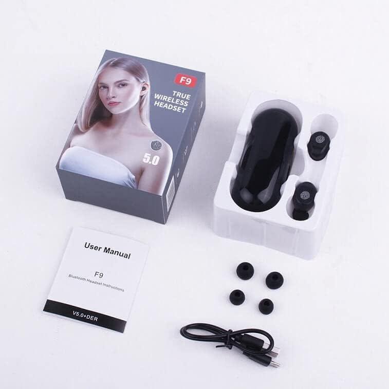 TWS Wireless Bluetooth Headset Earbuds Premium Sound with Battery Display F9-34 for Universal Cell Phone And Bluetooth Device (Black)
